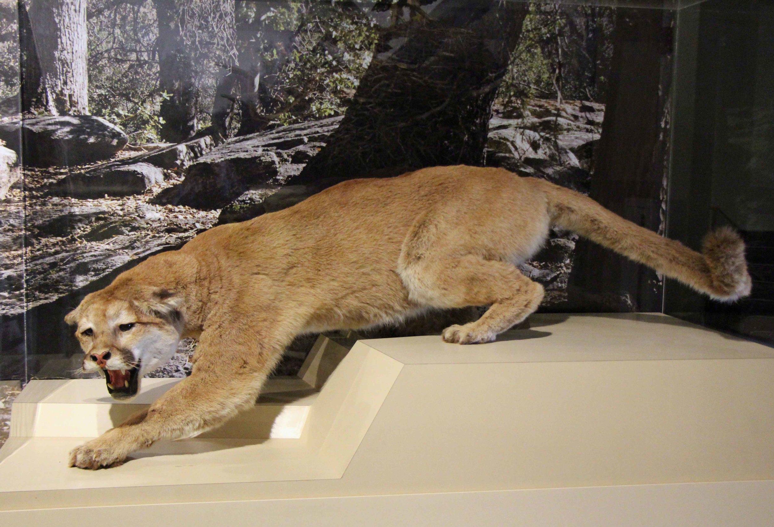 The largest displays depict local wetlands. The wetlands displays are surrounded by smaller displays of birds and mammals of all sizes including elk, pronghorn, mountain lion, raptors, fish, and extinct species such as grizzly bear, gray wolf, and jaguar.