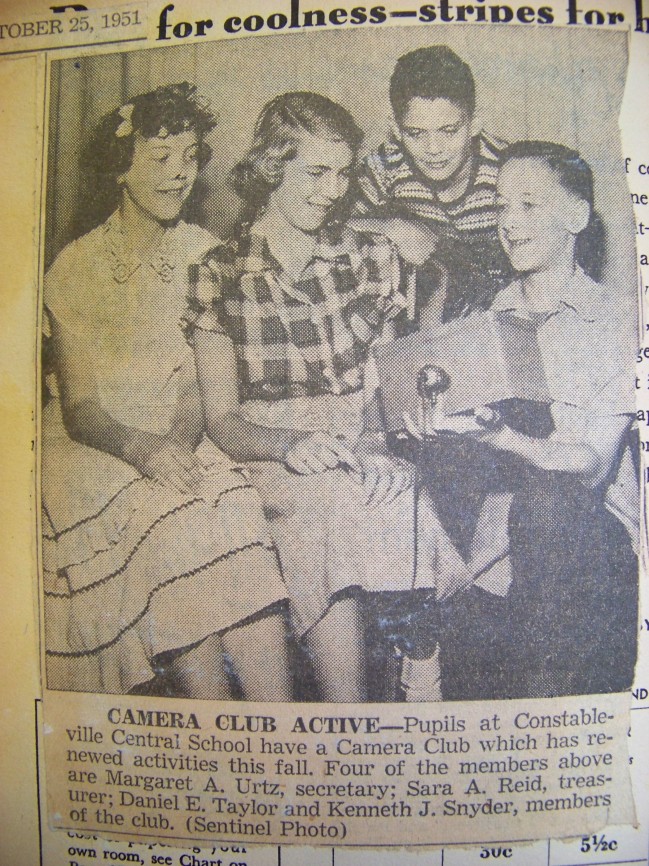 B & W photo caption: A clipping from the Boonville (NY) Herald. My uncle Kenny is on the far right in this picture of the Photography Club at Constableville (NY) School. Courtesy: Ramona Salmon.
