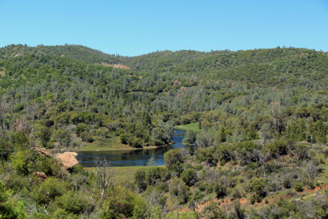 Most hikers start at water treatment facility at the end of Trabucco Road and climb over the ridge to the reservoir. You can also start on the south side of Highway 140, just east of the junction with Old Highway North.