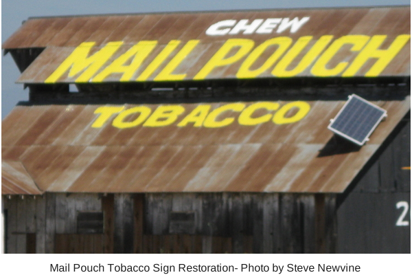 Mail Pouch Barnstormers is a non-profit group dedicated to preserving and celebrating the history of the tobacco company signs all over the United States. The group’s website (www.MailPouchBarnstormers.org ) explains how the group name was chosen.