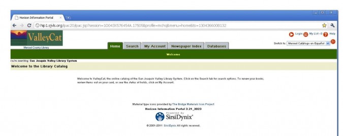 The Valley Cat online catalog can be accessed from your own computer by going to http://www.mercedcountylibrary.org and then scrolling down and clicking on Online Catalog.